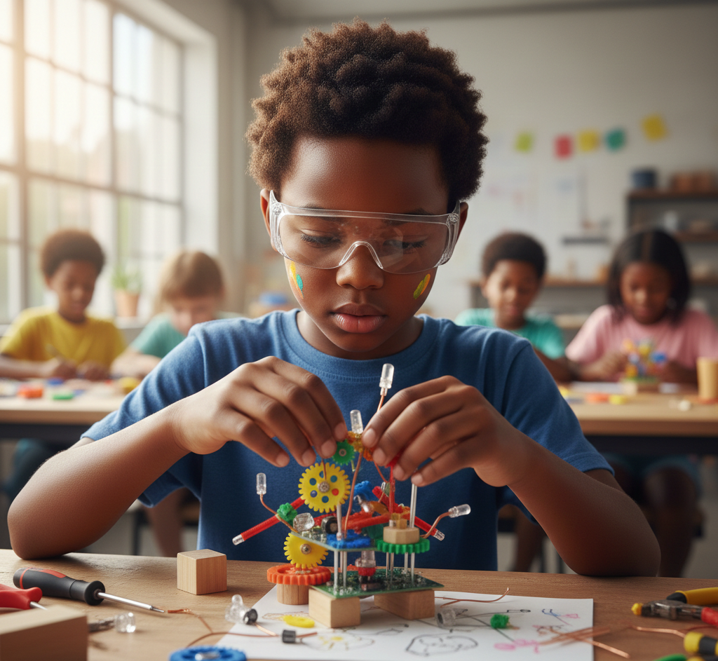 l’éducation devient réelle quand l’enfant agit, manipule et s’exprime librement, car un enfant qui expérimente aujourd’hui devient un adulte capable d’inventer demain.